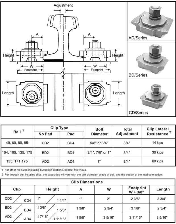 Through Bolt Crane Rail Clip: CD, BD, AD/Series
